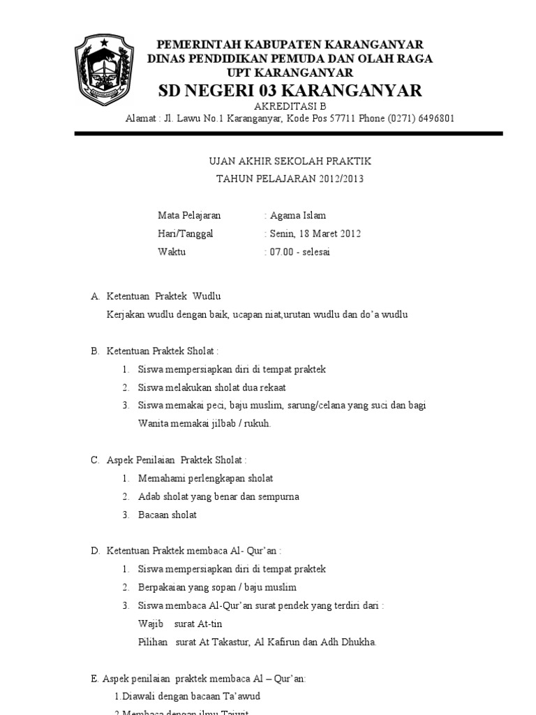 Format ujian praktek penjas kelas 6. Ujian praktek soal bahasa pidato penilaian inggris praktik agama. Contoh format penilaian ujian praktek penjas sd